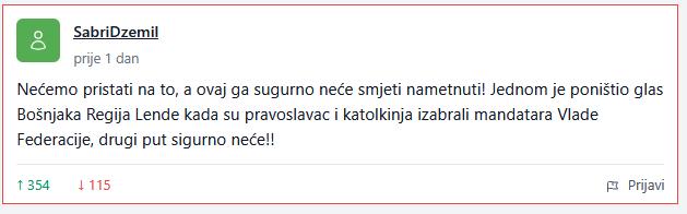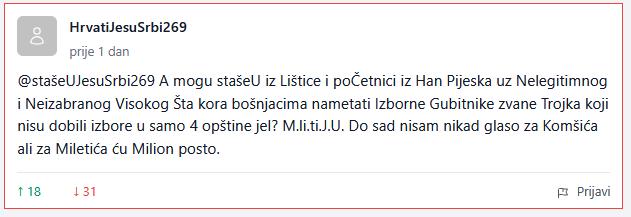 Očekivano, negativne reakcije došle su od “građanske” javnosti, kako sebe voli prikazati bošnjački ogranak ovdašnje tronacionalističke stvarnosti. Ta vrsta građanske uljuđenosti i pluralizmu sklone društvene svijesti svoju najiskreniju političku volju i želju iskazuje kroz anonimne komentare. Dole je samo par kreativnijih komentara ispod članka na Klixu, koji naravno nisu obrisani iako se taj portal hvali da ne tolerira jezik mržnje.