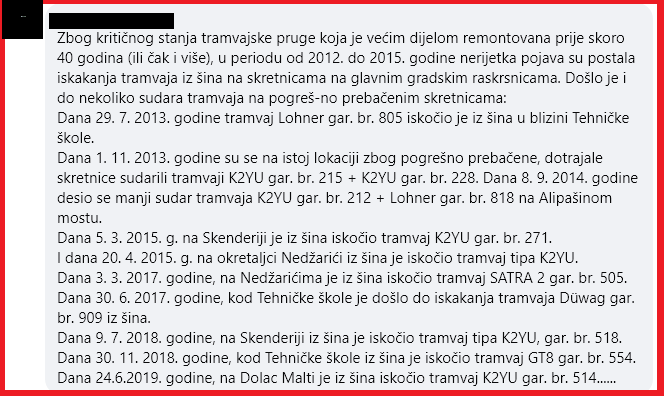 Koliko je novca proteklo kroz kantonalni budžet, mogli su nabaviti ne 25 nego 125 novih tramvaja, umjesto što su se hvalili donacijama istih. Pri tome, zaboravljaju na sve slične situacije kada su trebali kao „odgovorna“ vlast reagovati.