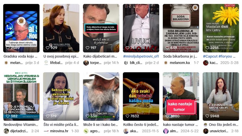 Prateći dezinformacijski sadržaj na TikToku*, počeli smo primjećivati snažniju prisutnost dezinformacija ili neprovjerenih informacija vezanih uz zdravlje, a to znači da bi nam se u mjesec dana na našem For You pageu pojavilo više od pet videa s takvim sadržajem, i to sa značajnim dosegom od više tisuća pregleda.